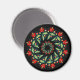 Dekoratives Muster in Form eines Kranzes aus roten Blumen und grünen Blättern auf schwarzem Hintergrund ist mit Elementen der ukrainischen Volksmalerei gemalt.