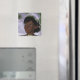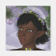 KRW Floral Fairy Fantasy Magnet. Linda fada Afro-Americana com flores no cabelo contra um fundo de fantasia na lua lavanda