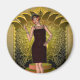 KRW colocando no Design Ritz Deco Flapper II. Uma bela flaper vermelha de cabelos vermelhos em seu vestido vermelho profundo de areia vermelha, vestida com penas e pérolas e um elegante porta-cigarros, contra um pano de fundo clássico de arte dourada. Perfeito para o fã do Roaring 20.