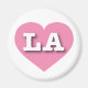 Este ímã apresenta um coração cor-de-rosa vibrante contendo as letras maiúsculas, brancas e em negrito LA, a abreviação oficial para Louisiana, o estado pelicano, ou Los Angeles, a cidade de anjos.