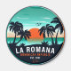 La Romana retro design de praia para férias. La Romana Caribe a ilha Vintage souvenir para a viagem para Caribe a ilha. Trabalho de arte de praia de La Romana para férias e mochilas dominicanos. La Romana na lembrança retrô de Caribe. Design para mochilas e viagem para a República Dominicana. Ilha de Caribe com praia, lembrança de Vintage para férias à beira-mar.
