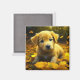 Doce cachorrinho brincando no ímã Autumn Leaves.