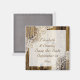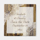 Lindo "save the date" ímã rústico branco em madeira com renda branca sobre madeira marrom que cobre dois cantos de um retângulo branco com borda de madeira marrom. Texto em marrom. Observe que a renda e a madeira são todas "impressas" e não materiais reais. Este elegante, sofisticado e romântico design shabby chic com uma essência rústica faz parte de um conjunto de casamento e é perfeito para um casamento country chic ou western na primavera, verão ou outono. Também funcionará perfeitamente para um casamento com tema de celeiro western.