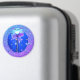 Uma adorável joaninha azul, turquesa e joaninha roxa. Ela é embelezada por estrelas e uma fita azul púrpura de chiffon. Colocado sobre um fundo brilhante roxo e azul.