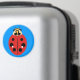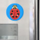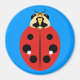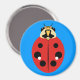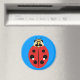Este ímã apresenta um bonito gráfico de ladybug vermelho sobre um fundo azul.