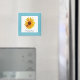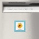 Um ímã azul giro com girassol amarelo brilhante e alegre, com uma pequena joaninha vermelha, sentada em suas pétalas. Personalize, adicionando seu nome a este design de estilo de país, seguramente colocando você em um bom humor de piquenique no verão!