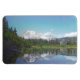 Uma ilustração digital colorida do Monte Rainier, a paisagem envolvente e o céu azul refletindo nas águas estáticas de um lago. Imagem Copyright ©2019 Kimberly J Tilley.