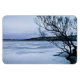 Este ímã flexível apresenta uma representação impressionista de uma paisagem cênica de inverno no lago Cayuga congelado, vista no Parque Stewart, em Ithaca, Nova Iorque. É um dos cinco lagoas dos Dedos no norte de Nova York. O dia frio e gelado, em fevereiro, é ilustrado pelos belos tons de azul, cinza, preto e branco do gelo e do céu. Galhos de árvores selvagens em silhueta enquadram o primeiro plano.