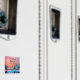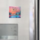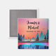 Magnet com uma bela design gráfica apresentando um lago pacífico com veados. e pinheiros altos sendo refletidos na água. Estrelas sobrepõem-se.
