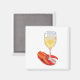 Ímanes de geladeira com ilustração de uma garra de lagosta em torno do caule de uma taça de vinho branco. Disponível como ímã quadrado ou ímã circular. Vários tamanhos disponíveis. Trabalho de arte: lápis colorido. Direitos autorais do trabalho de arte: Dominic A. White. Todos os direitos reservados.