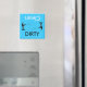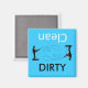 Um íman de máquina de lavar louça azul com uma pessoa pescando com palavras dizendo que Clen & Dirty faz uma bela máquina de lavar louça