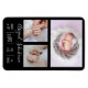 Imagem flexível de anúncio de nascimento de modelo de foto. Modelo tem posicionamento para três fotos. Edite facilmente o nome e os detalhes de nascimento com o recurso "Personalizar este modelo" de Zazzle. As fotos são apenas para fins de demonstração e devem ser substituídas antes da compra. Lançamento de Foto Flexível para Garota do Bebê em fundo preto.