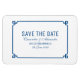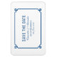 Chic Deco simples e minimalista Salve o Flexi Magnet da Data com uma moderna fronteira ornamental deco e azul escura. Esta imã salve a data clássica e elegante é fácil de personalizar com seus detalhes de casamento. Localize mais opções de personalização clicando em Personalizar.
