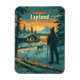 Uma representação serena e nostálgica da Lapónia, na Finlândia, mostrando a sua intocada natureza selvagem do Árctico, paisagens de neve e patrimônio cultural único. O projeto apresenta os icônicos rebanhos de renas da região, as Luzes do Norte dançando no céu noturno, e cabanas acolchoadas cercadas por florestas cobertas de neve, todas ilustradas em estilo antigo. Esta obra de arte captura a beleza serena e o espírito aventureiro da Lapónia, convidando os espectadores a experimentar a sua atmosfera mágica e maravilhas árcticas.
