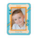 Imã de foto de presente da mamãe. Laranja e azul, com flores, corações e listras. Mamãe, eu te amo