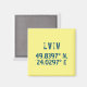 O design de ímã moderno apresenta coordenadas de latitude e longitude para Lviv, Ucrânia com uma fonte azul escuro angustiada sobre fundo amarelo