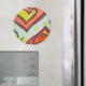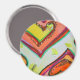 Detalhe de pintura de dois corações da pintura "Laugh". Os corações são amarelo, laranja, pêssego, rosa, magenta, e vermelho. A mídia é aquosa com brilho de vidro. Este artigo dá um presente a favor do excelente. Personalize e adicione seu próprio texto a ele.