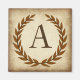 Uma delicada coroa de louros é colocada sobre um fundo de papel antigo no estilo clássico romano. Esta design é personalizada com o monograma "A" em tom siena rico.