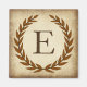 Uma delicada coroa de louros é colocada sobre um fundo de papel antigo no estilo clássico romano. Esta design é personalizada com o monograma "E" em tom siena rico.