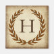 Uma delicada coroa de louros é colocada sobre um fundo de papel antigo no estilo clássico romano. Esta design é personalizada com o monograma "H" em tom siena rico.