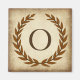 Uma delicada coroa de louros é colocada sobre um fundo de papel antigo no estilo clássico romano. Esta design é personalizada com o monograma "O" em um tom siena rico.