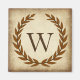 Uma delicada coroa de louros é colocada sobre um fundo de papel antigo no estilo clássico romano. Esta design é personalizada com o monograma "W" em tom siena rico.