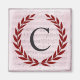 Uma delicada coroa de louros é colocada sobre uma camada de música de folha de cores rosa suave no estilo romântico clássico. Este design é personalizado com o monograma "C" em tom de cinza carvical.