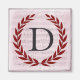 Uma delicada coroa de louros é colocada sobre uma camada de música de folha de cores rosa suave no estilo romântico clássico. Este design é personalizado com o monograma "D" em tom de cinza carvical.
