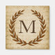 Uma delicada coroa de louros é colocada sobre uma folha de fundo musical antiga no estilo clássico romano. Esta design é personalizada com o monograma "M" em tom siena rico.