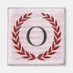 Uma delicada coroa de louros é colocada sobre uma camada de música de folha de cores rosa suave no estilo romântico clássico. Este design é personalizado com o monograma "O" em tom de cinza carvical.