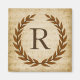 Uma delicada coroa de louros é colocada sobre uma folha de fundo musical antiga no estilo clássico romano. Essa design é personalizada com o monograma "R" em tom siena rico.