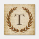 Uma delicada coroa de louros é colocada sobre uma folha de fundo musical antiga no estilo clássico romano. Esta design é personalizada com o monograma "T" em tom siena rico.