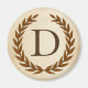 Uma delicada coroa de louros é colocada sobre um fundo de papel pergaminho no estilo clássico romano. Esta design é personalizada com o monograma "D" em tom siena rico.