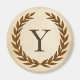 Uma delicada coroa de louros é colocada sobre um fundo de papel pergaminho no estilo clássico romano. Esta design é personalizada com o monograma "Y" em tom siena rico.