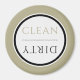 O ímã da máquina de lavar louça limpa/suja apresenta uma simples paleta verde de sábio com sotaque preto e branco; um medalhão estilizado com tipografia moderna. Um ímã simples, redondo, limpo/sujo, projetado em um esquema de cores moderno, adequado para qualquer decoração da casa moderna de hoje, ou um pequeno presente de cozinha moderno e pensativo para ele, ela ou eles.