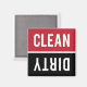 Ímanes vermelhos, pretos e brancos da máquina de lavar louça suja. Apenas reverta ou sacudir o ímã para limpar ou sujar na frente da máquina de lavar louça para informar sua família sobre o dentro de pratos. Design simples moderna.