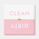 Como saber se seus pratos estão limpos ou sujos? Simples com este ímã de máquina de lavar louça que apresenta cor-de-rosa e branco com divisor de ouro decorativo. Tipografia limpa/suja.