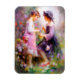 Duas garotas num jardim de flores, admirando uma flor de lavanda. Excelente para arte infantil.