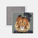 Esta design apresenta o retrato de um leão no fato e chapéu de um homem.