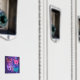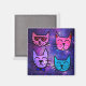 4 ilustrações diferentes de algumas faces legal de gatos no espaço. Um gato veste alguns tons legal enquanto os outros têm os olhos fechados e parecem relaxados, veste-se uma gravata arco. Estes gatos são colocados sobre um fundo espacial com cores brilhantes e muitas estrelas brilhantes ao fundo.