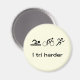 Um ímã engraçado para um triatleta. A legenda é "I tri harder", com três ícones pictogramas representando as três partes de um triatlo. Em um plano de fundo colorido ou clique no botão Personalizar para escolher sua própria cor de fundo.