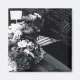 Retrato preto e branco de um buquê deixado na base do Memorial da Guerra do Vietnã em Washington, D.C.