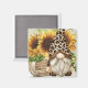 Um gnomo adorável numa impressão de leopardo juntou alguns girassóis.