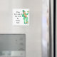 Um ímã branco quadrado com um duende que "A Sorte dos Irlandeses".