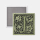 Letra decorativa encantadora J, estilo de caligrafia monograma inicial, tipografia, primeira letra em preto sobre vintage, revestimento verde de livro com folhas brancas de Ginkgo biloba.