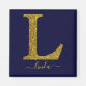 Dourada letra de monograma simulado com brilho sobre azul sólido da meia-noite. Personalize com seu nome ou mensagem na fonte de script ouro amarelo.