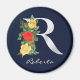 Imã Letra R | Nome | Monograma Metálico Branco Floral