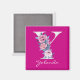 Imã Letra Y Magenta Monograma Metálico Floral Branco
