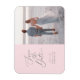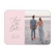 Um elegante e clássico "save-the-date" (salvar a data) - com fonte de script e foto de solteiro - em forma de ímã. Fotos e texto adicionais podem ser adicionados ao backer personalizável.