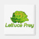 O texto diz "Lettuce Prey" em uma fonte verde brilhante com folhas de alface abertas sobre ela. Perfeito para veganos/vegetarianos, amantes de salada e qualquer outra pessoa que desfrute de um bom trocadilho.